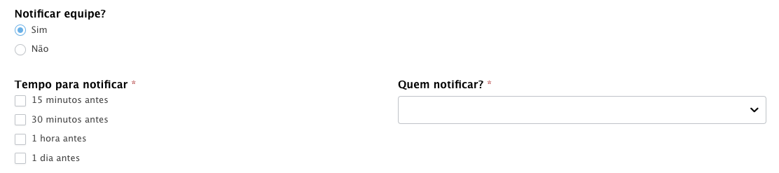 No preenchimento da agenda, você poderá incluir a ação da notificação para um membro da equipe, veja: Ao escolher o tempo da notificação, você poderá escolher quais usuários deverão receber o alerta. Temas: AgendaNotificação